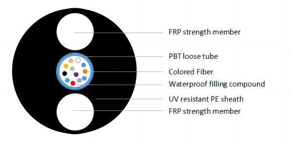 Two FRP as strength member applied over the inner sheath, the cable is completed with PE outer sheath.